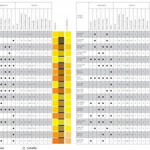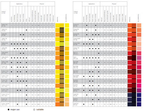 The following symbols indicate the applications, for which the pigments described here are particularly recommended.